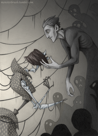 Here is a picture that just kind of happened. As in, it started out as me doodling Crispin and Fred arguing(?) for no reason, and then I just decided "Fuck it, this is a whole picture now."It's also one of those pictures where I don't actually know what precisely is going on, which you may recall is one of my favorite types. I guess I just like coming up with possible scenarios after the fact. (Maybe that's weird? Maybe you get a stronger end-product if you go into an art piece with a more solid idea? But eh.)