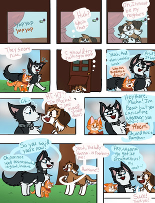Characters: Denise (border collie), Sammy (Pomeranian), Willow (tortoiseshell), Shelly (calico)