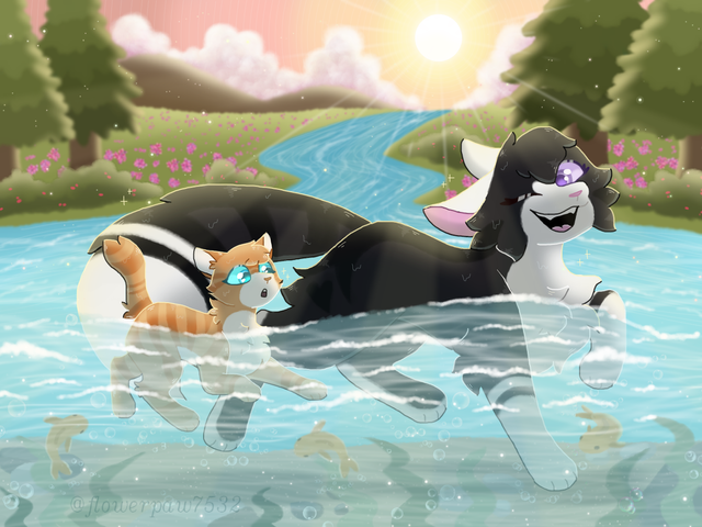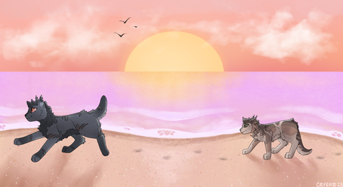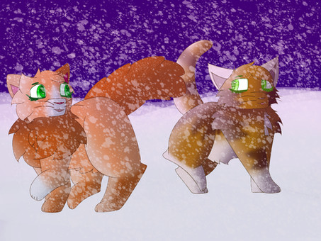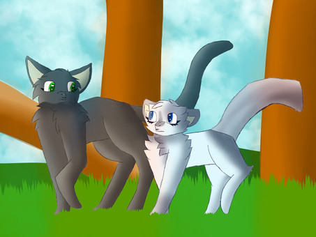Made this for an art prompt/challenge Iām doing with my best friendCharacters: Redmoth (orange tabby, he/him), Fawnpaw (brown and white cat, she/her), they belong to me