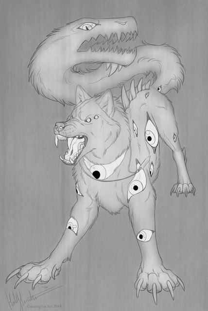 Very interesting. Maybe ou should just keep the wolf the wolf though, but it' would look neat with the horns!