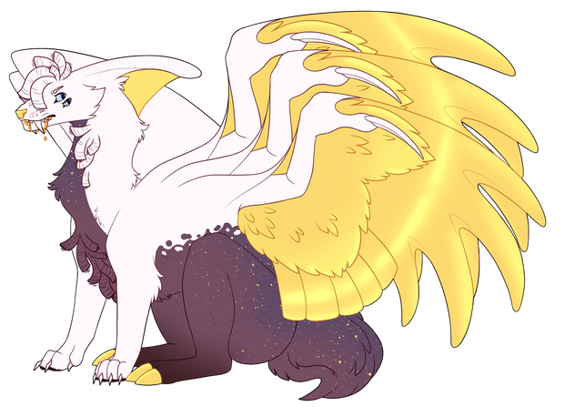 ANYHOOOO. My gawd, this is absouately kickass. 8D I just love that idea of combining all of your sonas into one and creating a new speicie. I like that, oh hell yes. Such a sexy, sexy beast. ;D All have such an equal balance though, from the dragon aspects to the wolfish looks. Wonderful job. <3 I adore the wings the most (don't we all? xD); such a unique way to combine dragon and raven wings together and making beautiful wings. <3 AND THOSE COOLORRRSSS. How hawt. I envy your artistic talent of smoothly combining the markings together to make it look realistic. ESPEICALLY THE WHITE BUTT. Omg, the white butt. 8DDD The snakes are pretty kickass too. >> Such a wonderful beast creature. 8D I'd totally do that... er, I mean draw that. Yeah. >> And Holly... if you really wanted to, you CAN make this into your main fursona. She's you after all and you shouldn't let anybody stop you really. <333