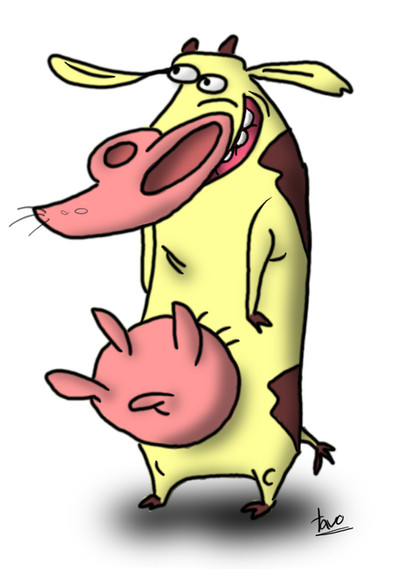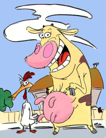 "¡Supercow al rescate!" One of the two main characters, Cow is Chicken's not-so-little 7-year old sister. She is usually viewed (at least by Chicken) as exceedingly infantile & stupid, but she occasionally displays uncanny talents. She speaks Spanish, is rather strong, and can be rather intelligible at times (but is exceedingly ignorant most of the time).Related content
