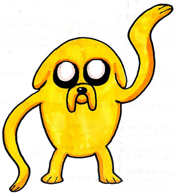 Jake is a magical dog and Finn's best friend, and brother. Jake has the power to stretch and manipulate his body. He's a pretty cool guy and is relatively intelligent at times (but irrational and thoughtless at other times) and can often be counted on to aid Finn in his pursuits. He can often be lazy and has random aggressive out bursts sometimes [link]but overall is a good natured guy.