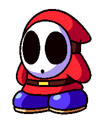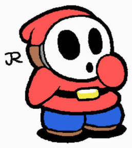 Shy guys are one of the few enemies of the Mario series that did not originate in a Mario game. They actually made their debut in "Doki Doki Panic" which was later remade into the "American Super Mario Bros. 2;" however, unlike most of the rumors state, "Doki Doki Panic" was co-developed by Nintendo. In fact, Miyamoto spent more time devoted to it's created personally than he did to the Japanese "Super Mario Bros 2," which is know to America as "Super Mario Bros: The Lost Levels." Shy Guys usually work for Bowser and the Koopa Troop, but they originally worked for the evil king Wart. Shy Guys are.... well... shy; It's in their nature as well as their name! This is why they wear a mask at all times. A Shy Guy, much like el Tauro Feurte, never removes his mask. Some even believe that it is not a mask at all, rather, their actual face. There has been.... one.. occurence though.... [link]P.S. The Shy Guy ghosts in Luigi's Mansion were fabricated by Vincent Van Gore (the painting ghost) and thus not actual Shy Guys.