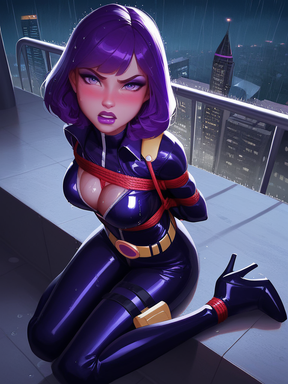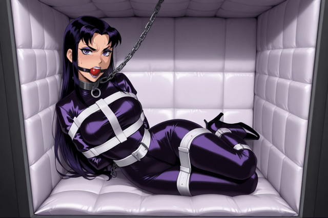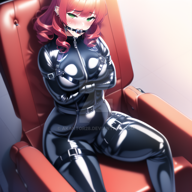 #leather #redhair #ai #cartoon #starfire #straitjacket #starfireteentitans #leatherbondage #straitjacketbondage #aiartwork