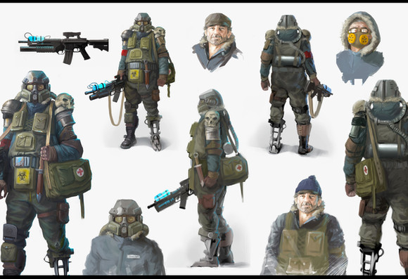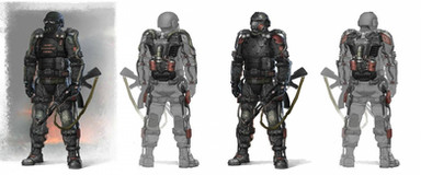 And the environement is really low oxygen and kind of cold.. so I thought spacesuit meets Mt. Everest mountain climber. I would love to do more with this world and character some day... but i dont know what. The story i came upw ith was a horribly cliche'd Bruce Willis / Total Recall flick.