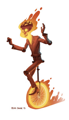 This would be me if I was the ghost rider. I hardly ever leave my office chair. Always drawing.