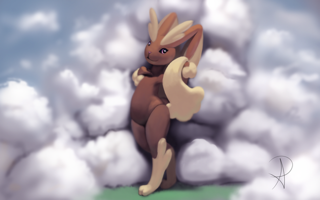 A mega lopunny getting a little relieve from cracking the back.Mega lopunny from pokémon series.