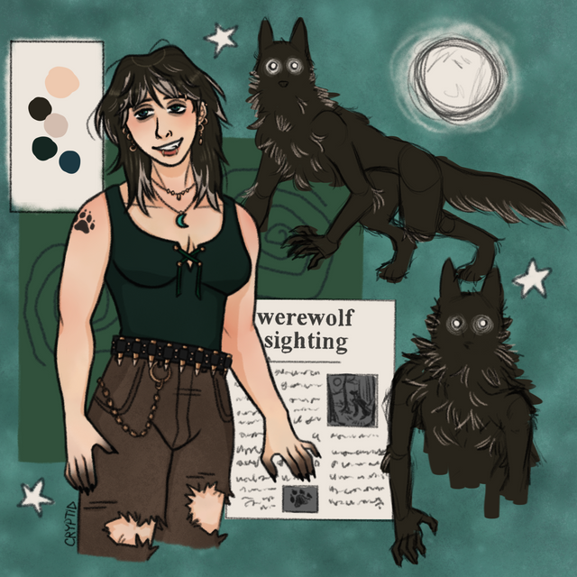 History: When asked what kind of werewolf she is, Nikola would tell you that she was the hairy kind. When pressed, Nik would tell you that hundreds of years ago her father made a wager with the devil and beat him good. The devil, angered by her crafty father, cursed the man to be a wolf by night. He plagued grain fields and farms until he came upon a holy man that looked into his soul and stabbed him between the eyes. At once, he became aware of himself. The holy man told him he was free from the devil’s influence, was in full control of his wolf shape, and recruited him to fight evil at his side.