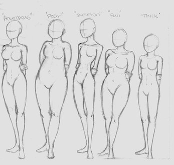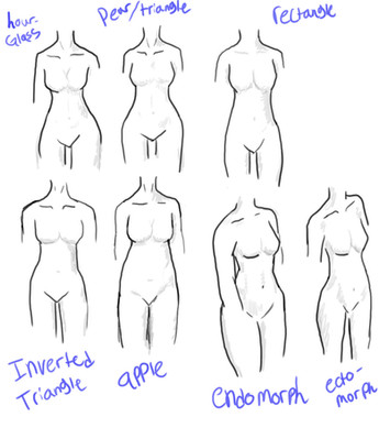Something to remember about body shapes is that there're actual shapes underneath the flesh. So it's okay to have different widths in different places (shoulders, hips, thighs, etc) and still have it look well proportioned. So the latter two here would apply to someone with the same bone structure-y stuff as the "average" one; whereas the "cubby" one could even apply to someone with a much thinner structure.