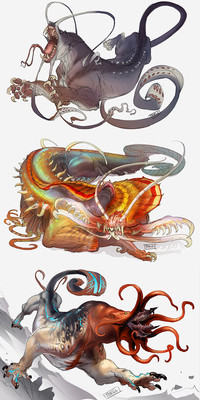 I said that that tiger was the right amount of freaky I need in all my sci-fi and fantasy settings but I hadn't realized you drew more than one. Ohhh my goodness. Hello yes I love... This pose?? this viewpoint??? This environment, and. Generally... [gestures to all of image] this... part. Here.