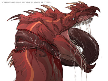 Threw some color on a sketchbook thing. A portrait of one of the scavenger-y Infernal Heralds. Much like carrion birds, they hover around the front lines waiting for carnage, lip-fingers rippling in a constant languid motion that resembles centipede legs. They are lightweights, cowardly, flighty, squabble-y. They wolf down corpses and strain the putrid juices back through their face holes. They're only interested in the husks.Related content