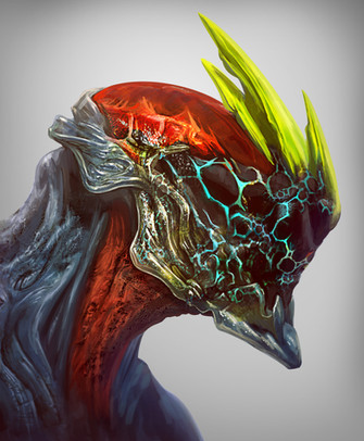 This is a fantastic creature, but where are his eyes!? This thing's neck is so massive I don't think it can even turn without it's whole body going with it. LOL The horns are really cool. Is the bottom one supposed to be a beard-horn or something? I want a beard like that!