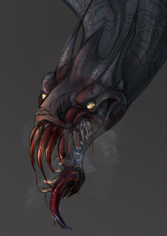The mucus from the tongue looks like its eating away the flesh around its neck, I love it! Great detail with the sticky mucus lines where the tongue coils around itself.