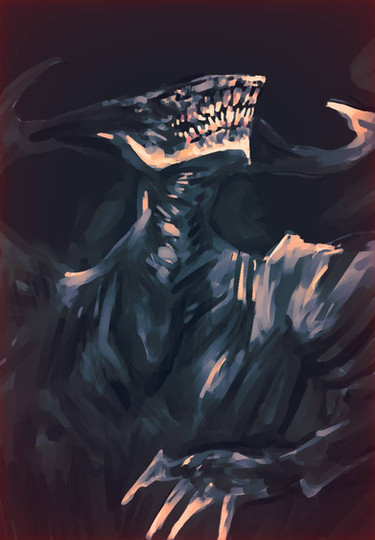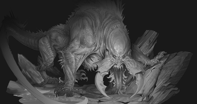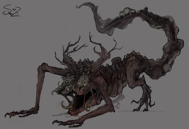 Probably one of my very favorite monsters you've created so far, which is saying something because your creatures are beyond amazing! I love how it has a strange human-like quality in its face, which just makes it all the more horrifying.