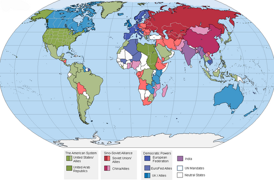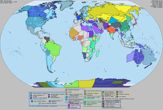 A retrofuturistic world where the west has become bogged down in the past. Heavy inspiration and Atlantatropa / the African Sea from Rvbomally's We're in the MoneyA world where the futures of the past came to fruitition and ended up bogging the Western States down in decaying infrastructure and smoggy cities. The 'Oriental States' missed the dieselpunk boat and moved straight into cyberpunk and have started a push into space with bases on the moon and a mars landing.