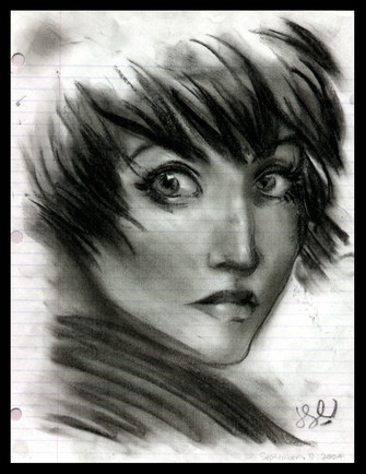 lovely pensive expression, and the green wall reminds me of the green screen in the comtech room! teehee c: