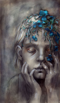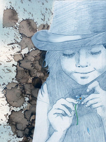 So, are the blue flowers gouache? (Gosh, I can NEVER spell that word right without looking it up!) Lovely, sad painting/drawing/piece.