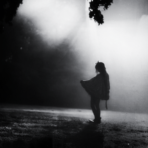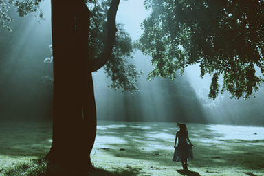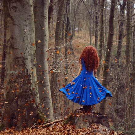 I love this, it looks like she's entering a world of mythological creatures or something, to me. I can't believe your dog took the photo! You're very talented.