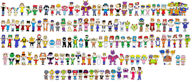 My first roster ever using Roster Builder stuff. This is my idea for a crossover fighting game featuring foreign Asian shows characters that many people don't know about, even including Oddbods despite the average number of people know about. Also includes characters from Mobile Legends, a Chinese mobile multiplayer-online battle arena game, and the Indonesian singer Isyana Sarasvati. Oh and also features two characters who named Poli (much like two Roy characters in Super Smash Bros, in this case one from Fire Emblem and other from Mario series). In order to distinguish the same name, the robot police car one was named "Robocar Poli".Franchises represented: