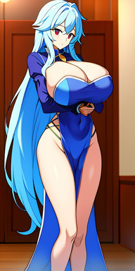 Crystal was being set up by her friends of a blind date. She however wanted to chose the location being a babin near the river in the forest. Of course the other girls didn't think it was a good idea, but Crystal told them it was fair for setting up a blind date for her behind her back. She wasn't going to be rude, she was going to show up. She knew nothing about him and showed up early before he could come. She figured practicing her water powers would be in her best interest. She was thinking of wanting a better hourglass shape. She has B cup breasts and a decent sized butt. Her Cyan hair was long and beautiful being one of the best things about her she loves. With the river's current and practice an idea came to her. She thought about it and went with it a little at first. Just a ball of water the size of her head. She touched it with her fingertips and absorb the water down her blood stream to her breasts and butt and they slightly grew. The water she was absorbing was used pretty quickly without much change. Crystal walked into the river and started to absorb the water. Her hips started to stretch while her thighs, butt, and breasts got bigger. Soon her body began to become very jiggly due to the current trying to throw her off ballence. However thanks to Crystals ability to control the water and her years of training for the control of weather storms such as heavy wind she has the ballence to keep herself upright. She stoped absorbing the water and commands a quick bit of it to throw her onto shore. She lands with lots of sloshing sounds being all over her body and extremely jiggly. She got up and looked around her body. She gasped not realizing she outgrown her normal clothes, most likely now shreds flowing along the river. Her swimsuit was still on being under her clothes in case she and her blind date wanted to go for a swim during thier date. She slowly walked into the cabin and looked at herself in the mirror. Her breasts were three times her head and her butt was twice of her head. Her hips were very streched out with her thighs being very large and being bean shaped. She laid back adganst the couch as her date walked through the door. She was rethinking about the decisions she made, but she would have to deal with it until the water evaporates from her body. "Hey im here. I am... uh..." The guy stoped talking when he saw Crystal. Crystal's checks turned red. "Yeah sorry. Im Crystal." The guy walked up and shook her hand. "My name is Fenix. I didn't expect someone like you to be honest. Anyways I brought my swimsuit and some food."