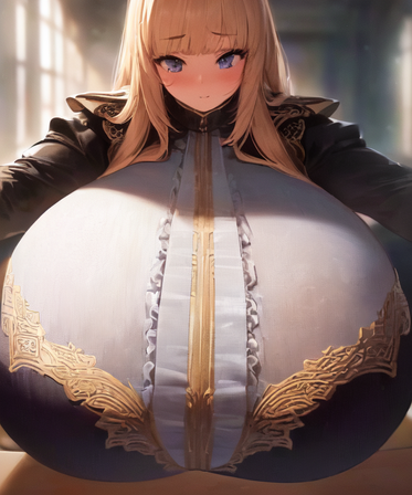 “Your highness, you haven’t seen my bust, have you? The magnificence from it is undeniable! Does no one think I should be Queen instead? I have a chest worthy of being royalty!” Despite having reached so far, the busty duchess' followers left her be as she was going up against a higher authority. The knights were called and she was taken away for the mistake she committed. Although, she had become a little self conscious. Her long-time friend and maid had been watching over her since her beginnings in the social circles. Knowing she could confide in her, she told her about her thoughts and, as soon as she finished, the maid was undressing her. The queen blushed, not expecting this much from her. As she was about to ask what she was doing, she pushed her on the couch with her bare chest and placed her hands on her breasts, slowly starting a massage. The Queen immediately started enjoying this and getting some wrong signals with how she made her feel. This resulted in the two going at a different kind of activity and some possible history being brought to their attention. It turns out she was simply massaging her to help her grow her breasts. She could already see herself struggling to close that short she was wearing and asked her maid, lover and future queen to massage her again and help her get bigger to get back at the other woman. The massage kept going, sometimes going a little astray because of how talented she was with her hands. Soon enough, her breasts covered her whole torso and she finally felt satisfied with her size. She returned to her throne with a new outfit, had the duchess called back in and mocked her attempt. She was then taken away to the dungeons and called for her lover for some more fun.Related content