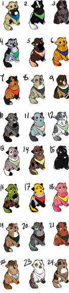 Argh, the yellow and green pair in the middle left dont have numbers :c I'll make those