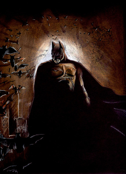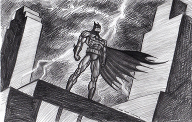 You've captured the essence of Batman himself very well. Your shading and sense of black and whites are just great. I really like how his cape flows, and how you tilted the picture.