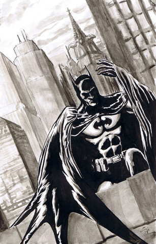 Awesome Batman! You do such justice to the character! And the minimal use of color is perfect- it adds to the sense of danger and foreboding in the piece.