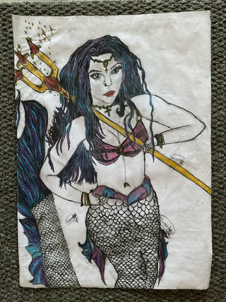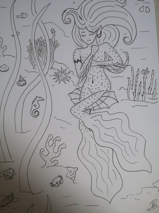 So much happier with this version of my mermaid drawing, finalised with fineline pen and drawing stump with a few tweaks here and there, alongside some more details included. Creating the bubbles were one of my favourite parts to do, same with the fishtail of the mermaid, which is one of my top favourites to work with. Looking at the work in progress (WIP) version makes me cringe, i am so glad i used my led light up board for recreating this piece for finalisation. The pose I had her in just looked so flat, I needed to bring some life more into it.