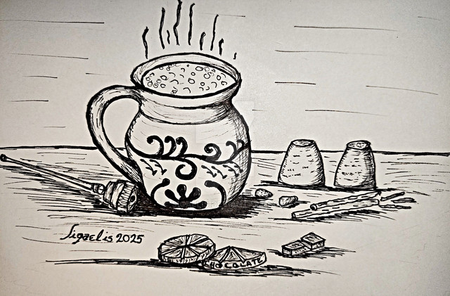 This has been done in progress with this www.deviantart.com/rlouward09/… , it is of the easter egg candle placed on top of a table with a mug of hot chocolate and marshmellows. I could not bear the sight of all the blank white gaps surrounding the paper.
