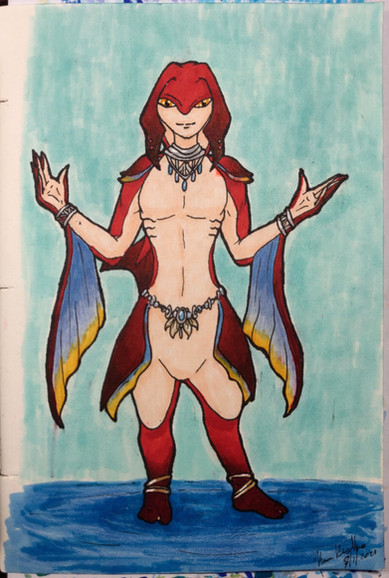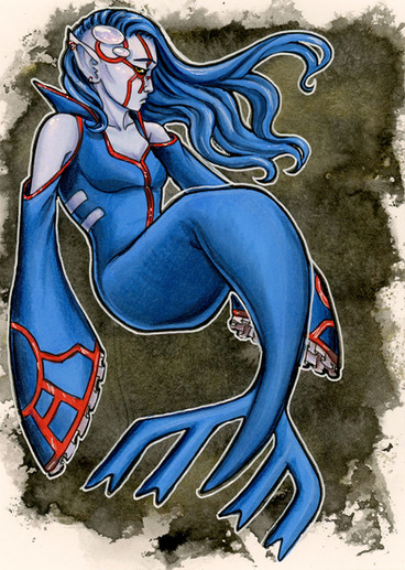So, I'm trying to get back in my art groove. Which means doing art. And mostly in traditional media (markers or pencils).Here's Princess Ruto from Legend of Zelda. I went with the Hyrule Warriors design, more because it gave some patterning on Ruto's torso, even if it means her chest is even more inexplicable. Insert my canned rant about how not every humanoid species' adult female needs a shape like breasts on her chest.