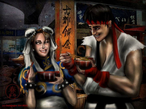 Yeah, jill and chun li at the pizza restaurant.pizza...yum yum!