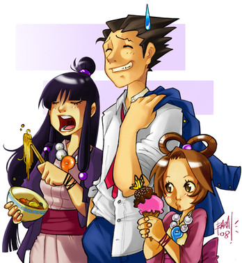 The entire picture is full of motion: the figures seem caught in mid-discussion. And the coloring...they look so cute and glossy! Truly a great piece of work; please, keep it up.