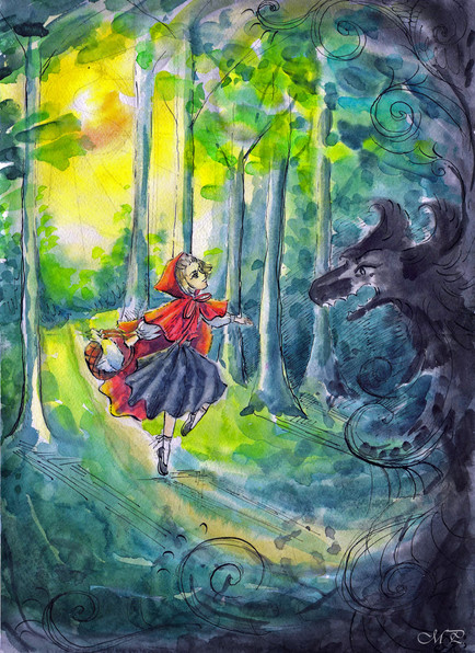 Such a beautiful painting! I love the details on Red's outfit and hair, you've given her a lot of depth and made her come alive in movement and colour