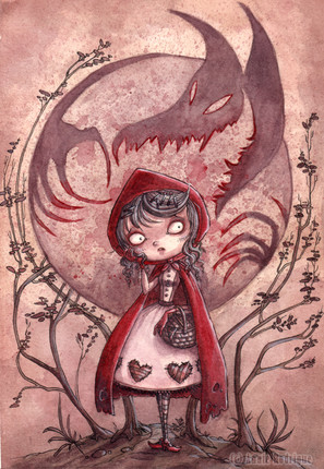 The Little Red Riding Hood and and Great Big Wolf.I purposefully chose to show as little skin as possible in this piece - I think women don't need to be showing off crudely their assets to be gorgeous and desirable, thank you very much.
