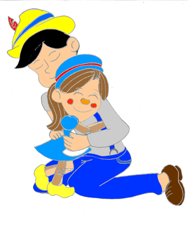This was requested by from his story "Geppetto's Pride" Where Pinocchio is born a real human boy instead of of puppet. Baby Pinocchio is so adorable and he even has a little Jiminy Cricket doll which is his most precious possession in the story. This is an interest concept of having Pinocchio be born a human and growing up into the real boy he becomes at the end of the film. I love it.ΒPinccchio and Jiminy Cricket are owned by Disney.Β