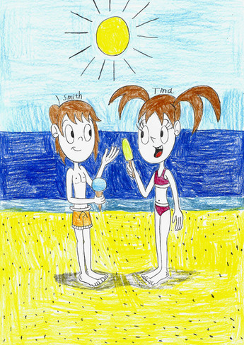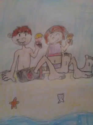 #beach #boy #cream #girl #ice #katy #smith #swimsuit #trunks