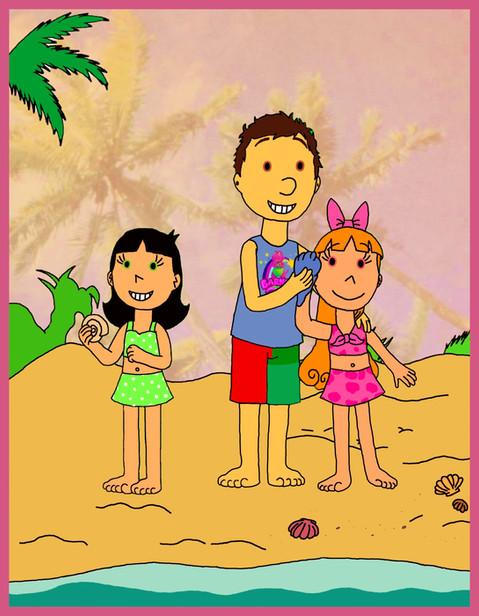 Trade art for Katy, Tina, and Smith making angels in the sand.Tina and Smith are owned by smithandcompanytoons