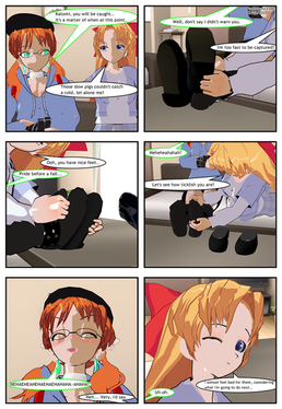 This is a recreation of 's 18th comic made back in 2011 called Shoeless, requested by This story introduced Red's infamous shoe thief Sayumi Imawano. One thing that's missing from her in the bow tie on the back of her skirt which I didn't have at the time I made this save of her. This was one of my favorite scene's from the story.Original version here-redfalcon23.deviantart.com/gal…
