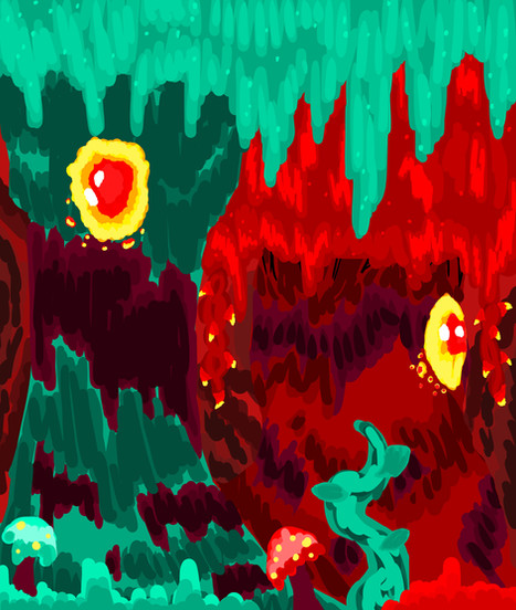 #cave #lava #mushroom #jsab #gif #lineless #mspaint #scene #justshapesandbeats #just_shapes_and_beats #jsab_fanart #just_shapes_and_beats_fanart