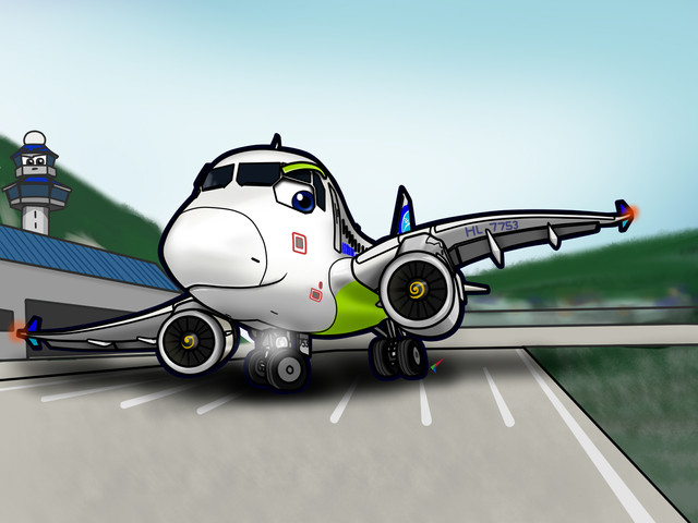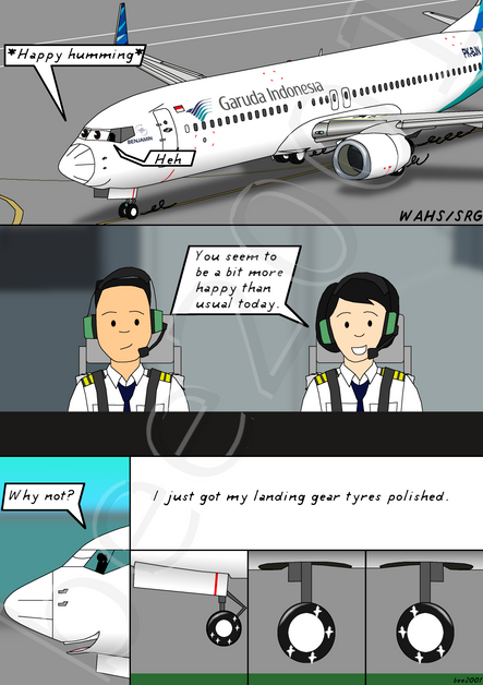 Alex and his captain, Jonas, discuss about the flight ahead before passengers start to head to the gate. Judging by the movement of his mouth looks like Alex opted to talk 'naturally' instead of 'electrically/electronically' through his speakers. Alex is displaying information for the flight like flight plans, manifest, loadsheets, etc and uses his belts to point at an info. And looks like his co-pilot has thrown caution to the wind by opting to nap in Alex which, considering Alex's repute in the fleet, is quite brave.This drawing of mine is now the most 'elemental' to this point. Having a lot of extra elements like the belt loader, the tractor with his baggage trailer, the ramp agents, the ladder, and the jet bridge. Very happy on how this came out