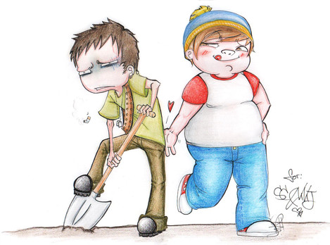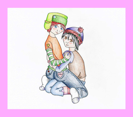 It's sssssssssooooooooooo cute! I love how Kenny's sitting in Eric's lap and trying to be all secretive about taking the candy! It's so cute! I just love how you draw!