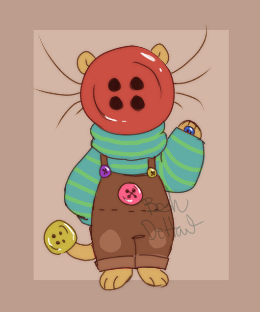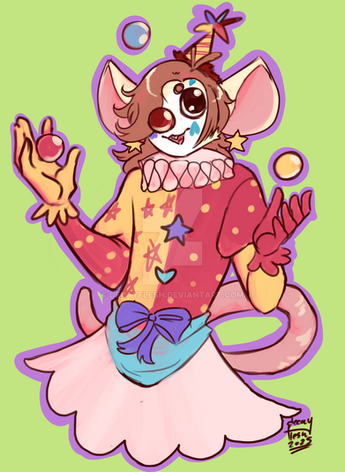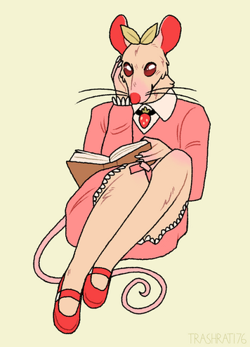 Just a lil redesign.[Image description: A digital colored sketch of an anthropomorphic mouse lady. She has white with red striped fur and is wearing a vaguely steampunk outfit. She has box braids up in a bun, and her tail is striped too.]