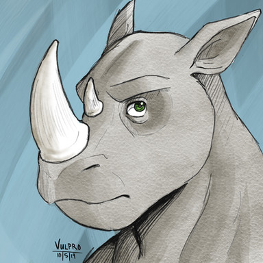 another dino doodle uwu[image description: a colored sketch of a bust of an anthro triceratops. They're orange with yellow stripes.]