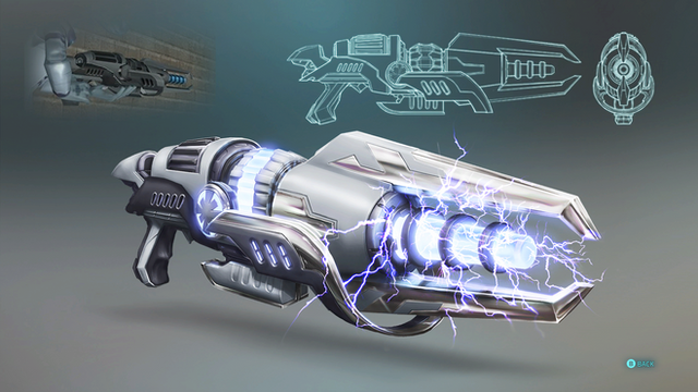 Sort of Covenant-like, especially the blue glow at the end. Could imagine this as a plasma weapon of sorts.