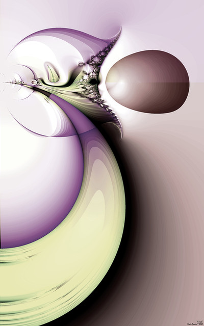 I had to think of an angel, a face against a pregnant belly,...Separation...mmm...between light and dark I can see that..and a scar...It is beautiul. Glad to see a new fractal of you Kim!