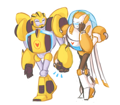 *Seperates Blades and Bumblebee* Leave him be Blades, you are making him uncomfortable... Blades: ... *Starts to cry*