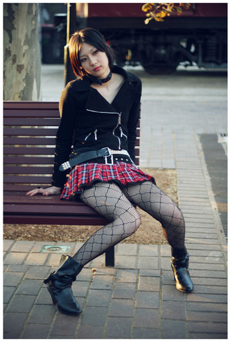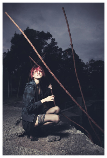 This is beautiful dude I dunno if it's just me, but I love how her stockings create black outlines around her legs, it makes it look like a cut-out from the landscape ^_^
