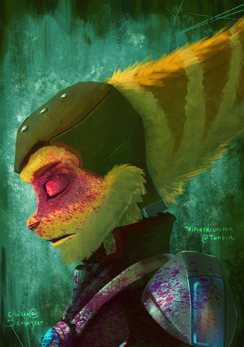There's not much of a story going on, I thought I'd experiment with colours and background. Tho Id say Hunter has a side of humanity as a individual and as yellowdizzylomabax OC without ratchet, maybe.
